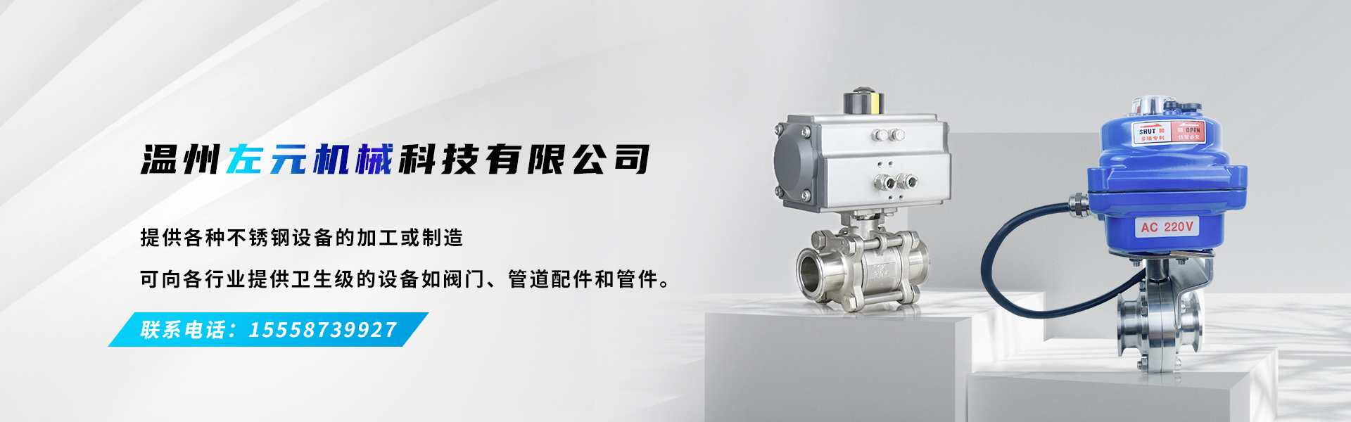 溫州左元機械科技有限公司成立與 2015 年,位于浙江省溫州市濱海園區(qū)十四路,主要經(jīng)營包括衛(wèi)生級手動球閥、氣動球閥、電動球閥、衛(wèi)生級手動蝶閥、氣動蝶閥、電動蝶閥、衛(wèi)生級取樣閥、卡箍、管支架, 以及灌裝設備系列,管件系列等